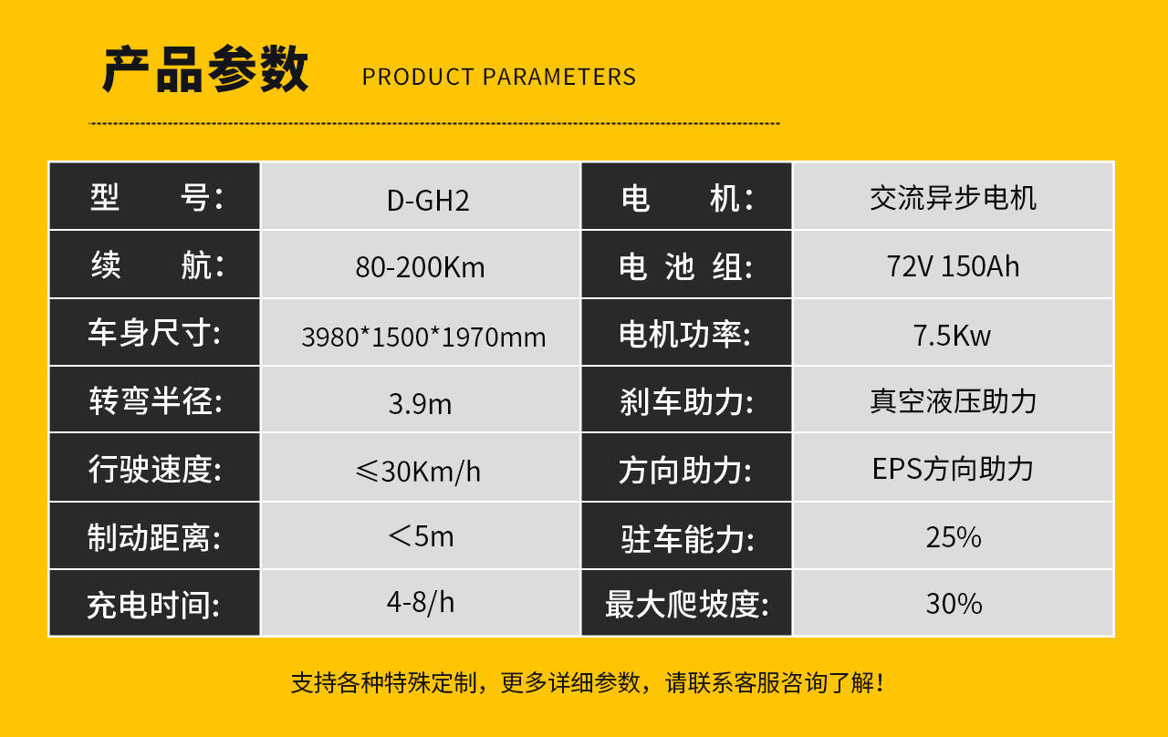 | 电机 | 大功率交流电机 72V/7.5KW |